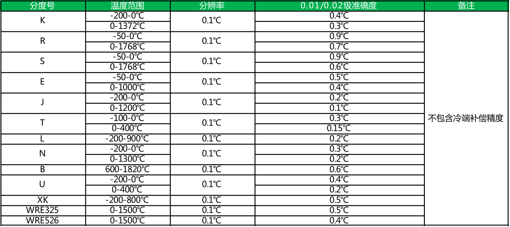 注:内置冷端补偿精度0.5℃