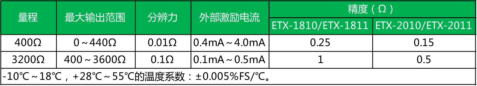 l 独有的自动识别三线、四线接线方式;精度为0.02%(ETX-2010或2011),0.05%(ETX-1810或1811);